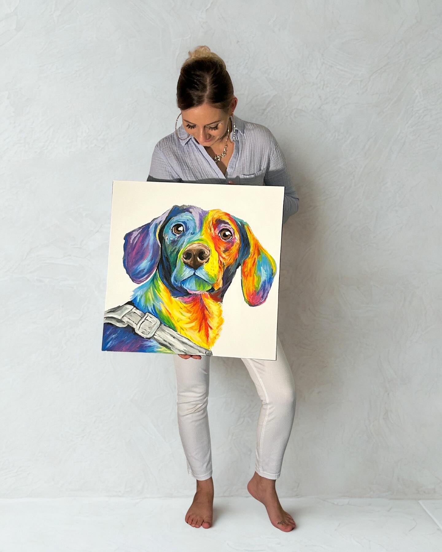 Taylor Rodriguez, often referred to as, Simpsonville Artist, is an innovative artist specializing in abstract pet portraits, blending bold colors and dynamic forms to capture the unique personalities of beloved animal companions in striking, expressive compositions. Her work resonates with pet owners globally, celebrating the bond between humans and their furry friends through expressive artistry. Born and raised in Simpsonville, SC, Taylor is dedicated to bringing more color and light to her town.